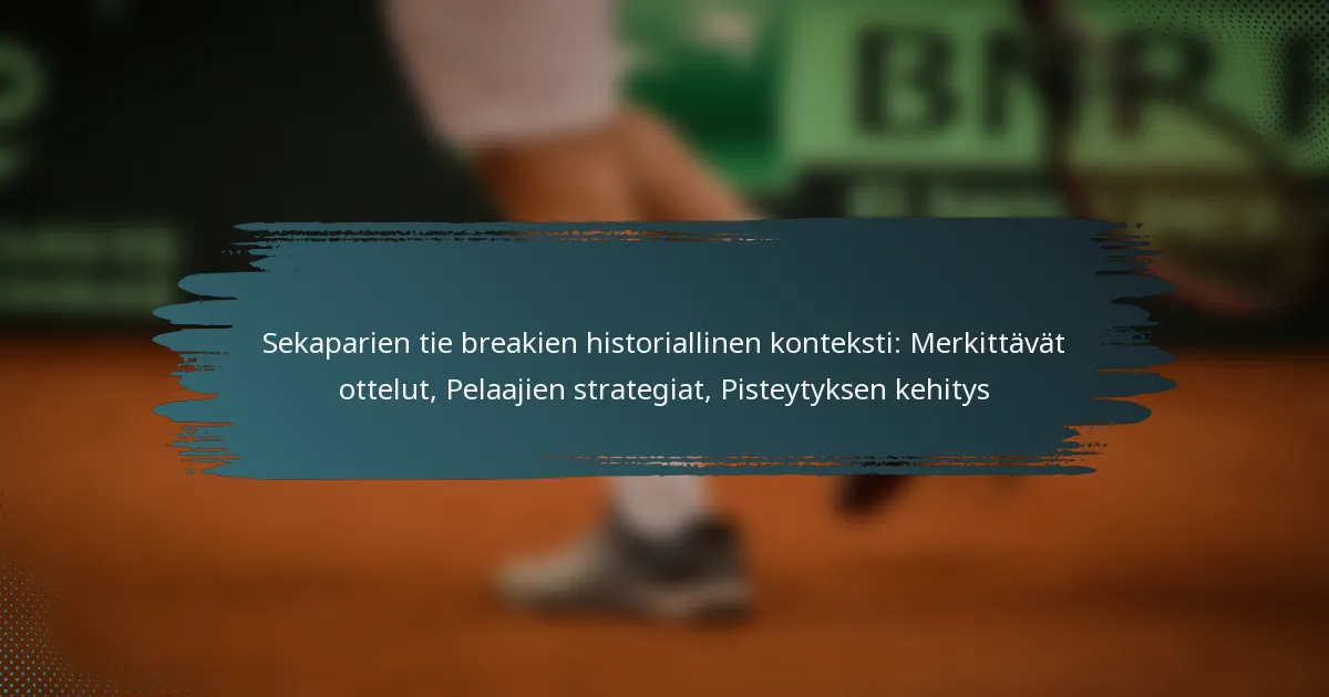 Tie break -pisteytysjärjestelmä sekanelinpelissä on käynyt läpi merkittäviä muutoksia vuosien varrella, mukautuen kilpailullisuuden ja katsojien sitoutumisen parantamiseksi. Aluksi tie breakit olivat vähemmän strukturoituja, mutta ne ovat kehittyneet standardoiduiksi muodoiksi, jotka vaihtelevat turnauksittain, vaikuttaen pelaajien strategioihin ja otteluiden lopputuloksiin.