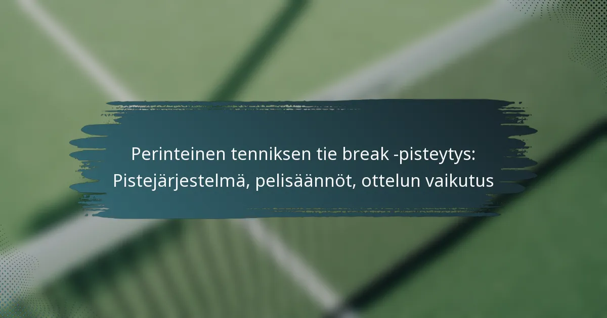 Junior-tenniksessä tie break -pisteytys on räätälöity erityisiin ikäluokkiin, varmistaen, että säännöt vastaavat nuorten urheilijoiden kehitystarpeita. Nämä mukautukset eivät ainoastaan paranna kilpailukokemusta, vaan myös edistävät taitojen kehittymistä samalla kun säilytetään reiluus ja integriteetti otteluissa. Oikea ottelukäyttäytyminen tie break -tilanteissa on olennaista, korostaen urheiluhenkeä ja selkeää viestintää pelaajien ja viranomaisten välillä.